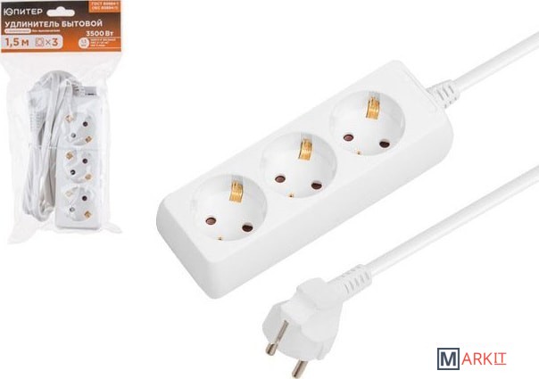 Изготовлен только из качественных материалов в соответствии с ГОСТ 60884-1!Латунная контактная группа для устойчивого электрического контакта между вилкой и розеткой.Выключатель имеет световую индикацию наличия напряжения в сети, а также позволяет одновременно отключить все подключенные приборы.Защитные шторки открываются нажатием только на две одновременно, что обеспечивает надежную защиту от случайного прикосновения к токоведущим частям (защита детей).Провод из чистой меди и контроль производства гарантируют реальное сечение провода и работоспособность удлинителя при подключении нагрузки до 3500Вт.Присоединение проводов выполнено методом точечной сварки, в отличие от присоединения проводов винтовыми зажимами, благодаря чему исключается возможность ослабления контактов в течение всего срока службы удлинителя.Благодаря сечению провода 1,5 мм2 рекомендуется к использованию со всеми приборами имеющими функцию нагрева (плита, обогреватель, стиральная машина, посудомоечная машина, духовой шкаф, кофемашина и другие), мощностью до 3.5кВт.Предназначен для подключения бытовых электрических приборов к электрической сети переменного тока внутри помещения.Удлинитель поставляется в индивидуальном прозрачном пакете с усиленным подвесом, на котором отображена вся необходимая информация.