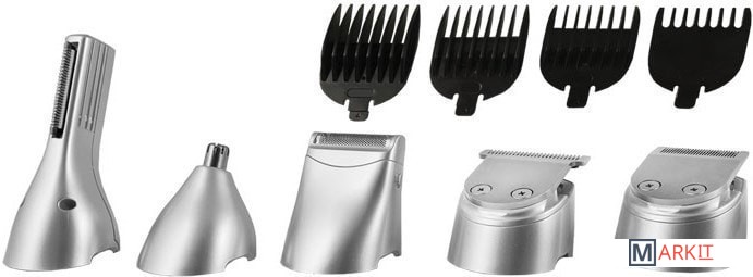 | Насадки | гребни, точный триммер, микротриммер, для носа и ушей, бритва |
