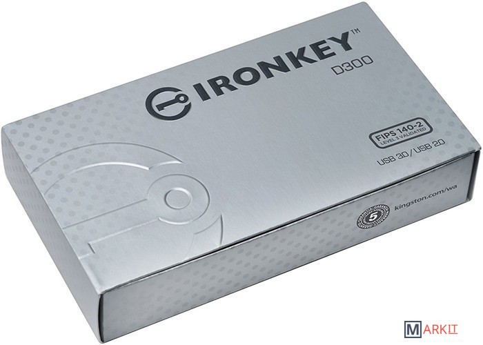 USB-накопитель IronKeyTM D300 Kingston обеспечивает высокий уровень безопасности с помощью специальных функций для надежной защиты всех самых важных данных. Он сертифицирован на соответствие требованиям стандарта FIPS 140-2 уровня 3 и имеет 256-разрядное аппаратное шифрование AES в режиме XTS. Кроме того, накопитель использует встроенное ПО с цифровой подписью для защиты от атак класса BadUSB, а также обеспечивает комплексную парольную защиту1 для защиты от несанкционированного доступа. Шифрование и дешифрование выполняются в накопителе, не оставляя следов в хост-системе; накопитель блокируется и переформатируется после 10 попыток ввода пароля для защиты от атак методом подбора.