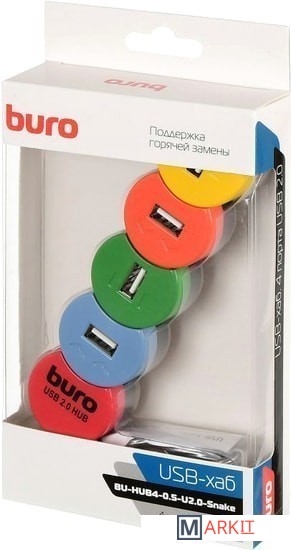 Markit » USB-хабы и док-станции » USB-хаб Buro BU-HUB4-0.5-U2.0-Snake