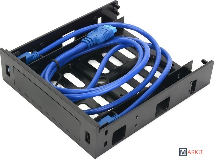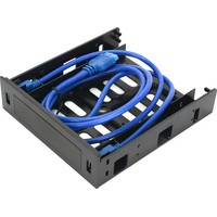 Панель позволяет установить два высокоскоростных порта USB 3.0 в внешний отсек 5.25", а так же одно внешнее устройство типоразмера 3.5" или 2.5".Особенности:- Совместимость с устройствами USB 1.1-3.1;- Стандартный разъём 19pin для подключения к материнской плате;- Высококачественный медный кабель и позолоченные контакты обеспечивают скорость передачи данных до 4.8Гб/сек;- Длина кабеля подключения 80 см;- Место для установки устройства 3.5|2.5";- Съёмная заглушка 3.5".