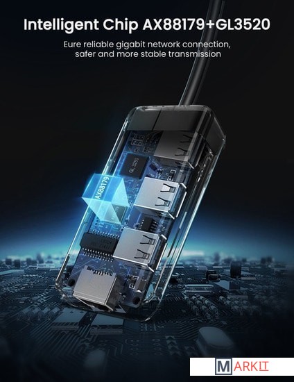 Все разъемы на адаптере USB-A 3.2 Gen1 (5 Гбит/с), RJ-45