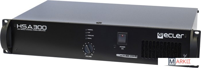 Ecler HSA300 — одноканальный усилитель с выходным линейным напряжением 100 В (при высоком импедансе). В нем реализована собственная технология Ecler SPM 100 — Channel N, позволяющая подключать динамики с линейным напряжением 100 В без линейных трансформаторов на 100 В, в отличие от традиционных усилителей этого типа. Это дает множество преимуществ, главное из которых — великолепное качество звучания, особенно на низких частотах.