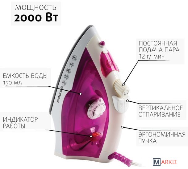 | Тип утюга | с пароувлажнением |
