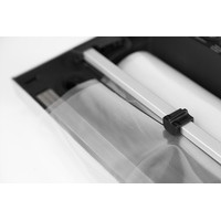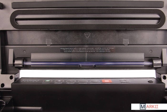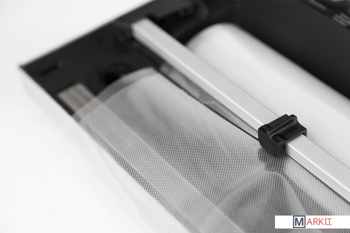 Автоматическое запирание крышки. Встроенный контейнер для рулона. Встроенный резак для плёнки. Функция «Память» — для запоминания степени откачивания воздуха на импульсном режиме (удобно для вакуумирования одинаковых порций однотипных продуктов в большом количестве. Дома, в магазине, предприятиях общественного питания). В комплекте: рулоны 20 x 300 см, 30 x 300 см, адаптер для контейнеров.