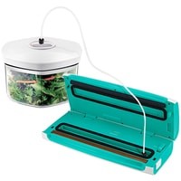 Создаваемое разрежение (максимум): 0.7 бар.Длина шнура: 1.2 м.В комплекте:- резак;- шланг для откачки воздуха;- 5 пакетов для вакуумирования (22x30 см).