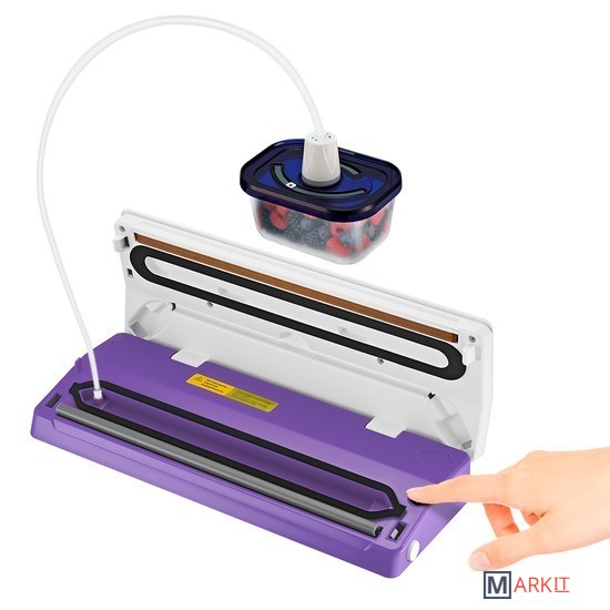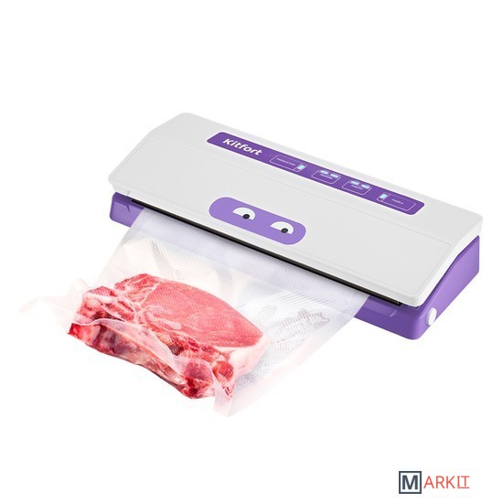 Вакууматор — устройство для вакуумной упаковки продуктов. Вакуумирование позволяет защитить от пыли, грязи, сохранить аромат и продлить сроки годности пищевых продуктов. Такой метод хранения уменьшает риск развития бактерий, которые появляются благодаря взаимодействию пищи с воздухом. Удаление воздуха из пакета гарантирует замедление процессов брожения, окисления и испарения, позволяя сохранить приятный внешний вид и качество самых разных продуктов питания.Вакууматор очень прост в использовании. Чтобы провести запаковку продукта, необходимо поместить его в специальный пакет, предназначенный для вакуумирования. Открытый край пакета укладывается в вакуумную камеру. После чего нужно закрыть крышку вакууматора и включить упаковку в автоматическом режиме. Вакууматор начинает выкачивать из пакета воздух. В результате образования вакуума пакет плотно обжимает содержимое. Как только воздух удален, начинается пайка открытой стороны пакета. В результате воздух уже не сможет проникнуть внутрь.Вакуумирование ускоряет засолку, маринование и мочение. В вакууме процесс обработки продуктов такими способами значительно ускоряется.Метод вакуумирования применяют не только в кулинарии, но и в других областях. Для туристических и бытовых нужд в вакуумный пакет можно поместить документы, деньги, спички, лекарства, мобильный телефон, карту, компас, чай и другие предметы. Охотники могут запаковать порох и патроны. Это защитит их от сырости и попадания воды. Серебряные украшения, коллекционные монеты, значки, упакованные таким способом, не будут тускнеть со временем.Вакуумная упаковка продуктов и вещей помогает значительно сэкономить место как в холодильнике, чемодане, так и по всей квартире. Пакеты с откачанным воздухом и сжатым содержимым занимают гораздо меньше пространства.В KT-1523 есть режимы для вакуумирования сухих, влажных или мягких продуктов. Прорезиненные ножки делают устройство более устойчивым и не дают скользить по столу во время работы.