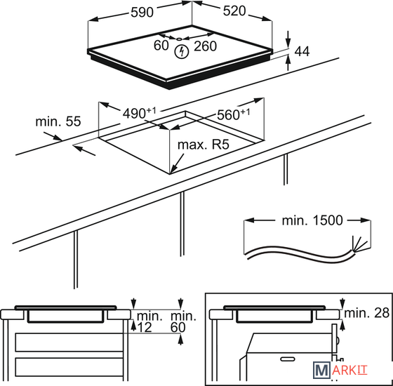 Левая ближняя зона нагрева: 2300/3200W/210mmЛевая дальняя зона нагрева: 2300/3200W/210mmПравая ближняя зона нагрева: 1400/2500W/145mmПравая дальняя зона нагрева: 1800/2800W/180mm