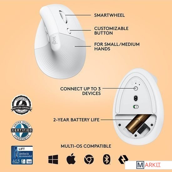 Markit » Компьютерные мыши » Вертикальная мышь Logitech Lift (белый)