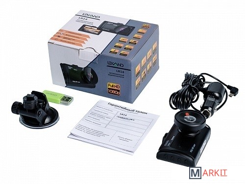 Видеорегистратор LR14, держатель на лобовое стекло, автомобильное зарядное устройство, руководство пользователя, гарантийный талон, USB устройство для чтения карт памяти microSD - кардридер