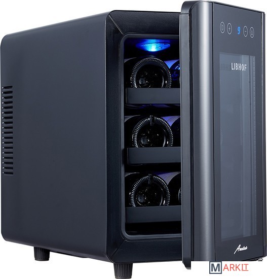 Монотемпературный шкаф для вина Libhof AX-6 работает по термоэлектрическому принципу, который основан на использовании эффекта Пельтье. Основное преимущество данной модели – отсутствие губительных для бутылок с вином вибраций. Шкаф отлично подойдет для хранения белых и красных вин, требующих дозревания перед употреблением, а также уже готовых к сервировке. Дверца в стальной раме оснащена стеклопакетом дымчатого оттенка с UV-фильтром, который отлично защищает вино от ультрафиолетового излучения. 3 съемные металлические полки вмещают до 6 бутылок вина объемом 750 мл. Благодаря светодиодным лампам синего цвета обеспечивается красивая подсветка силуэтов винных бутылок. Электронный термостат с цифровым индикатором, расположенным на дверце шкафа, позволяет без труда следить за температурой внутри камеры. Модель имеет стильный современный дизайн и будет отлично смотреться в интерьере, выполненном в современном стиле.