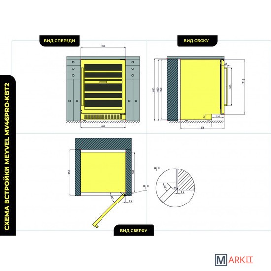 Винный шкаф Meyvel MV46PRO-KWT2Модель MV46PRO-KWT2 имеет привлекательный внешний вид, сочетающий в себе неподвластное времени очарование натуральных материалов с высокотехнологичными системами сохранения продуктов. Винный холодильник Meyvel MV46PRO-KWT2 оснащен дверью с защитой от ультрафиолетовых лучей и отлично подойдет для хранения и созревания различных сортов вин. Динамическая система охлаждения обеспечивает оптимальную температуру для вина и сохраняет необходимую влажность внутри камеры.Универсальный микроклиматКомпрессорный винный шкаф Meyvel MV46PRO-KWT2 обладает большой вместимостью и даёт возможность разместить до 46 бутылок стандартного типа Бордо (0,75 л). Располагаются они на выкатных полках из дерева. Внутреннее пространство шкафа разделено на 2 температурные зоны, с возможностью настраивать каждую из них. Диапазон верхней зоны варьируется от +5°C до +12°C, а нижней - от +12°C до +20°C.Сенсорный дисплейБыстро задавайте необходимую температуру для содержимого и управляйте всеми функциями холодильника с помощью интуитивно-понятного расположения клавиш на сенсорном дисплее.Комфортное расположениеMeyvel MV46PRO-KWT2 отлично подходит для расположения на любой кухне. Шкаф можно встроить под столешницу и отрегулировать ножки по высоте, а так же, перенавесить дверь для более удобного использования (петли входят в комплект).Фильтрация поступающего воздухаВ винный шкаф встроен угольный фильтр, который будет очищать поступающий воздух от посторонних запахов, которые губительно влияют на вкусовые качества вина.Рекомендуем проводить замену фильтра 1 раз в год.