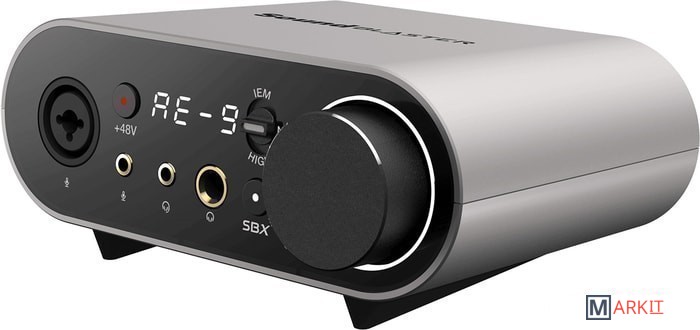 Основным компонентом Sound Blaster AE-9 является ЦАП класса ESS SABRE 9038 с поддержкой воспроизведения звука высокого разрешения. Он обеспечивает сверхвысокий динамический диапазон 129 дБ, поддерживает воспроизведение звука 32 бит/384 кГц в форматах PCM и DSD64 и имеет невероятно низкий коэффициент нелинейных искажений -120 дБ (0,0001 %).Звуковая карта Sound Blaster AE-9 оснащена полностью дискретным двойным усилителем Xamp для наушников, который усиливает каждый аудиоканал по-отдельности, что позволяет добиться детализации звука для каждого наушника без потерь качества независимо от требований пользователя. Большинство мощных функций Sound Blaster AE-9, таких как усилитель Xamp, поддерживаются модулем регулировки звука, который устанавливается на столе. Модуль регулировки звука также поддерживает динамические/конденсаторные микрофоны с фантомным питанием, идеально подходящие для профессиональных создателей контента и стримеров.Модуль регулировки звука позволяет вам быстро изменить настройки аудио. Большая многофункциональная ручка регулировки позволяет контролировать громкость и переключаться между наушниками и динамиками. Кнопка SBX позволяет пользователям включать и выключать обработку звука Sound Blaster, а с помощью большого светодиодного дисплея удобно считывать громкость наушников и динамиков.