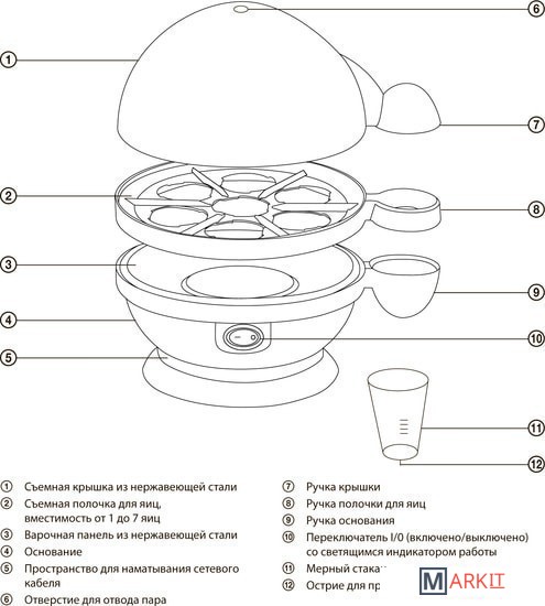 | Вместимость | 7 яиц |