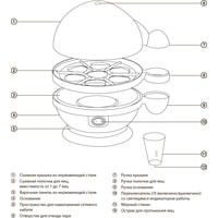 3 уровня готовки: всмятку – идеально подходит для завтрака, в мешочек – подходит к рыбеи вкрутую – для салатов;Съемная крышка из нержавеющей стали;Съемный лоток для яиц для подачи яиц на стол;Полностью автоматическая работа;Защита от перегрева;Выключатель со светодиодным индикатором;Съемная крышка для упрощения очистки;Встроенный измерительный штифт.
