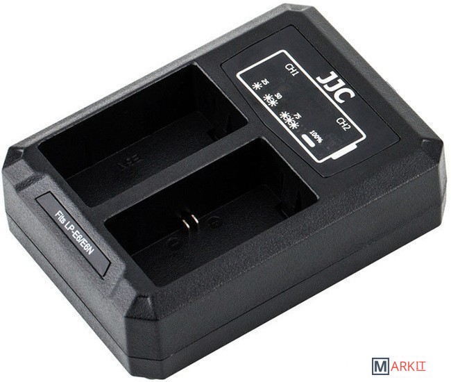 JJC DCH-LPE6 USB двойное зарядное устройство на два аккумулятора Canon LP-E6 и Canon LP-E6N со встроенным USB кабелем и индикатором уровня зарядкиКомпактный дизайн, высокое качество, прочный корпусВремя зарядки зависит от емкости аккумулятораКомпактный и портативный дизайн. Индикатор мигает во время зарядки и постоянно горит когда аккумулятор заряжен. Так же дисплей зарядного устройства показывает процент заряда каждого аккумулятора. Вы можете заряжать как два аккумулятора, так и один.Встроенная система защиты от перезаряда и перегрева аккумулятора.Когда батарея только начинает перегреваться, зарядное устройство немедленно прекратит зарядку. Кроме того, зарядное устройство автоматически обнаружит когда батареи полностью заряжены и прекратит зарядку, чтобы предотвратить повреждение ваших аккумуляторов.Зарядное устройство подключается через USB порт, что позволяет заряжать аккумулятор от огромного числа устройств. Кабель USB интегрирован в корпус зарядного устройства и укладывается в специальные пазы корпуса. Заряжайте аккумулятор Canon LP-E6 и Canon LP-EN дома, в студии и в дороге! (если в автомобиле есть USB разъем или USB адаптер в "прикуриватель").