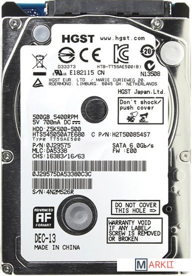 Markit » Жесткие диски » Жесткий диск HGST Travelstar Z5K500 500GB HTS545050A7E680 (восстановленный)