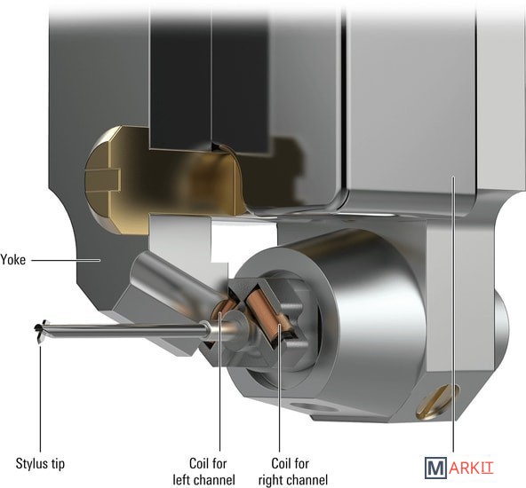 Флагманский картридж с подвижной катушкой. Двойная подвижная катушка выровнена в форме перевернутой буквы V, что обеспечивает высокое разделение и широкий отклик для четкой локализации звука и минимальных искажений. Специальная заточка иглы позволяет извлечь максимально возможное количество информации из канавки виниловой пластинки, обеспечивая очень низкий уровень искажений и значительно повышая верхнюю границу частотного диапазона.